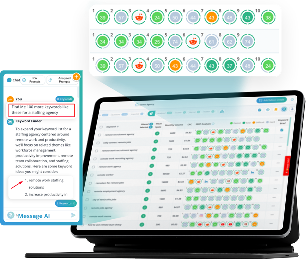The New Keyword Finder AI analyzes over 15 data points to reveal high-converting "WeakSpot" keywords that other tools completely miss. Our proprietary technology shows you exactly where you can outrank competitors in days instead of months — delivering qualified traffic without the endless waiting or costly ad spend.